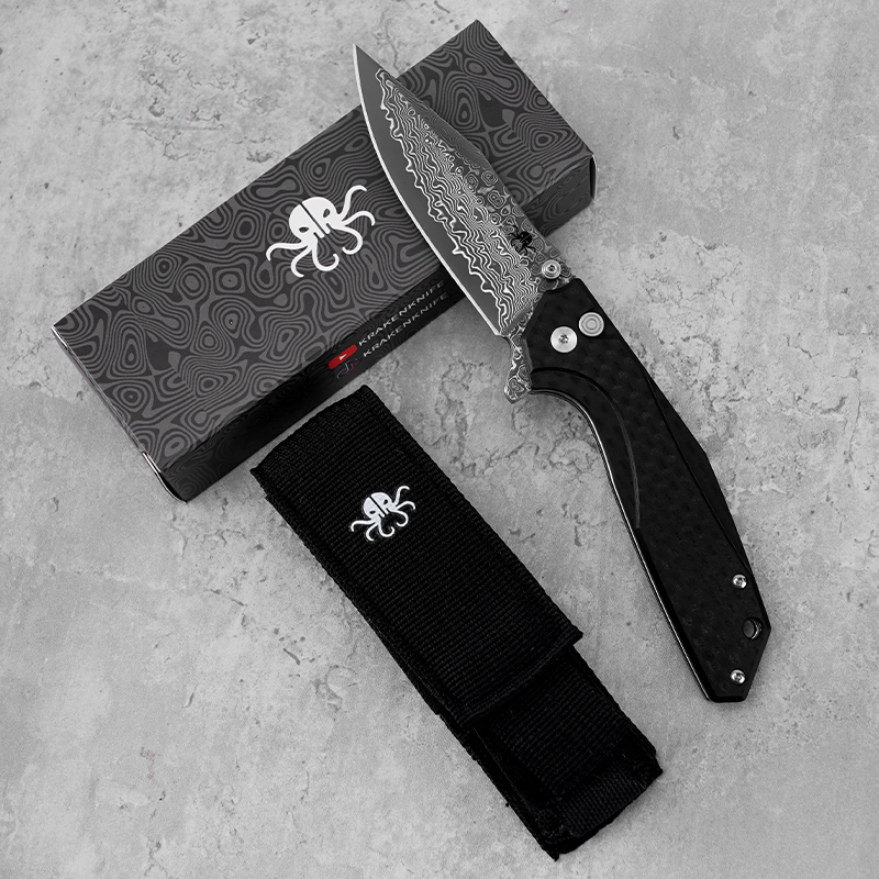 Be the first to review “KLAKEN J284 NOIR, Damascus Blade With G10 Handle Button Lock EDC Folding Pocket”