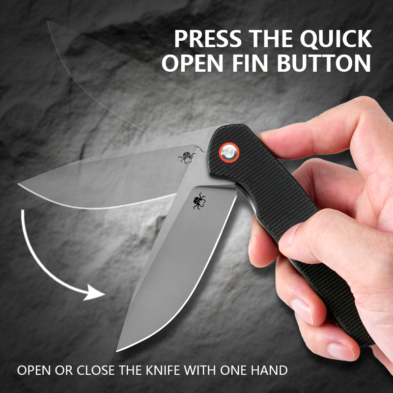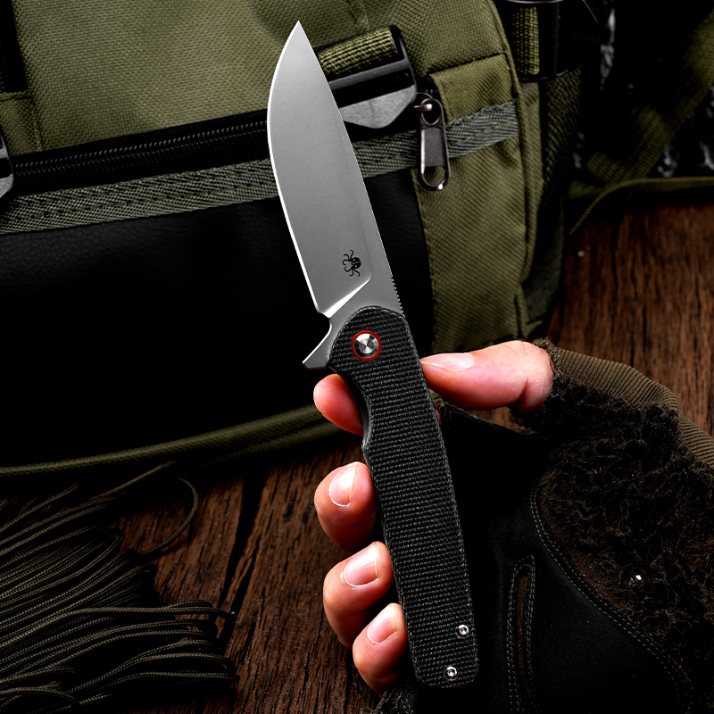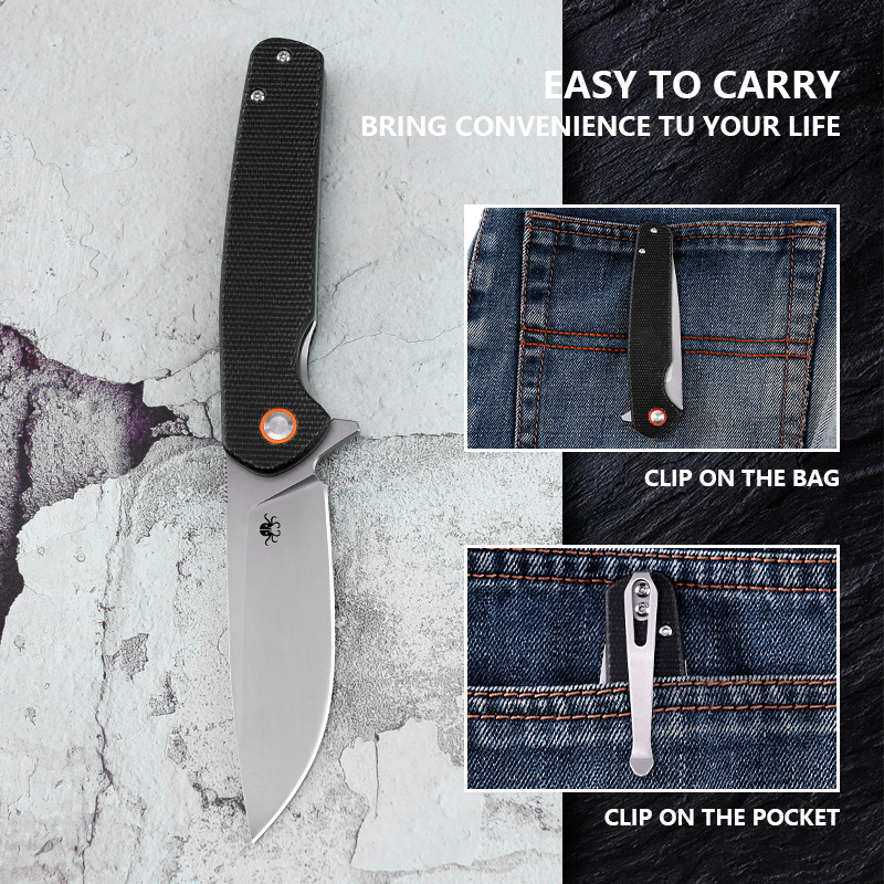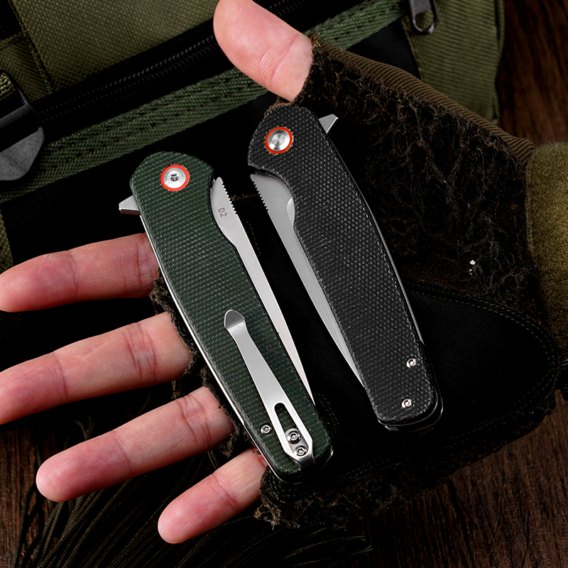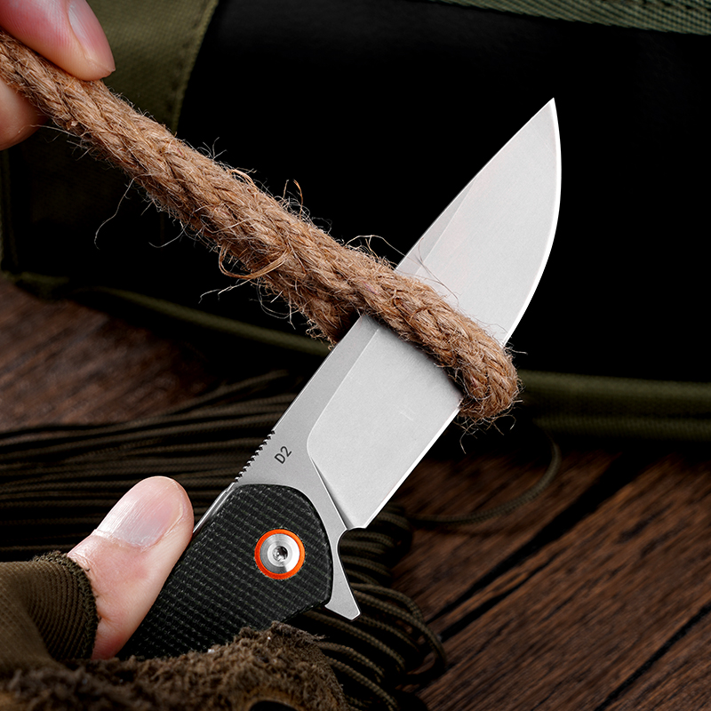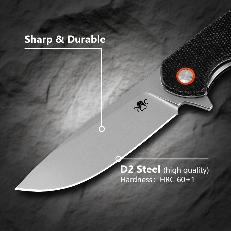 KLAKEN J326-VAREK, D2 Sandblasted Blade With Micarta Handle EDC Folding Pocket
