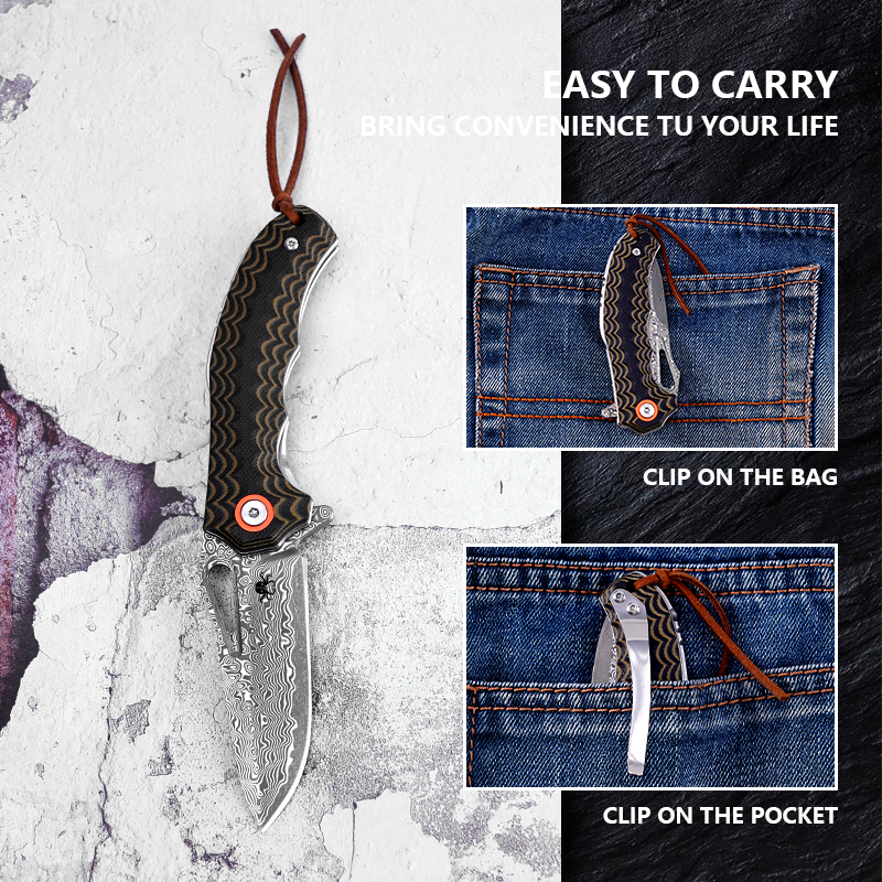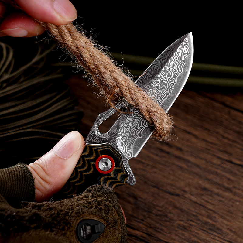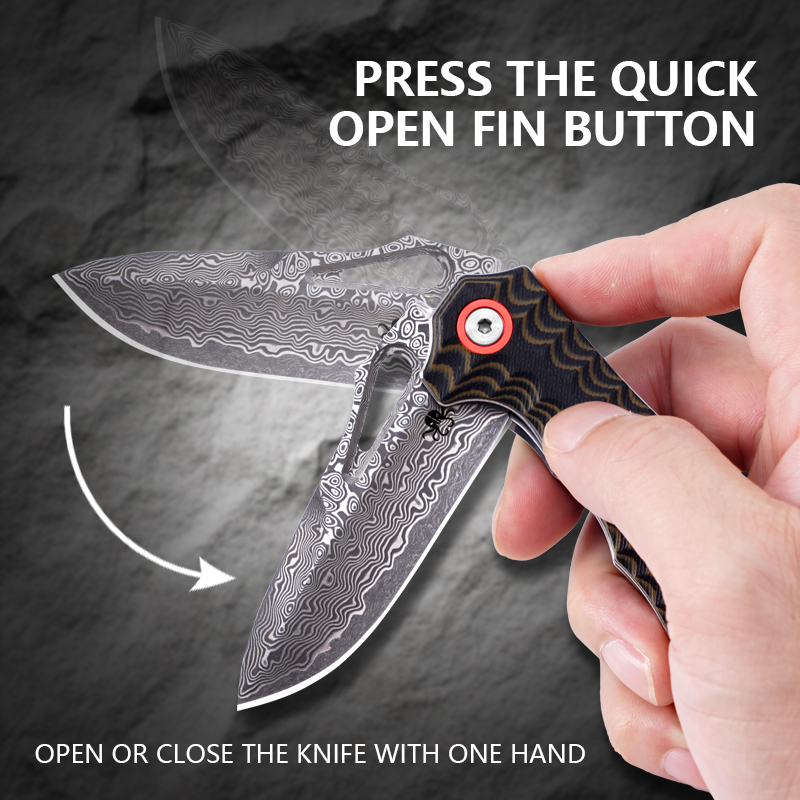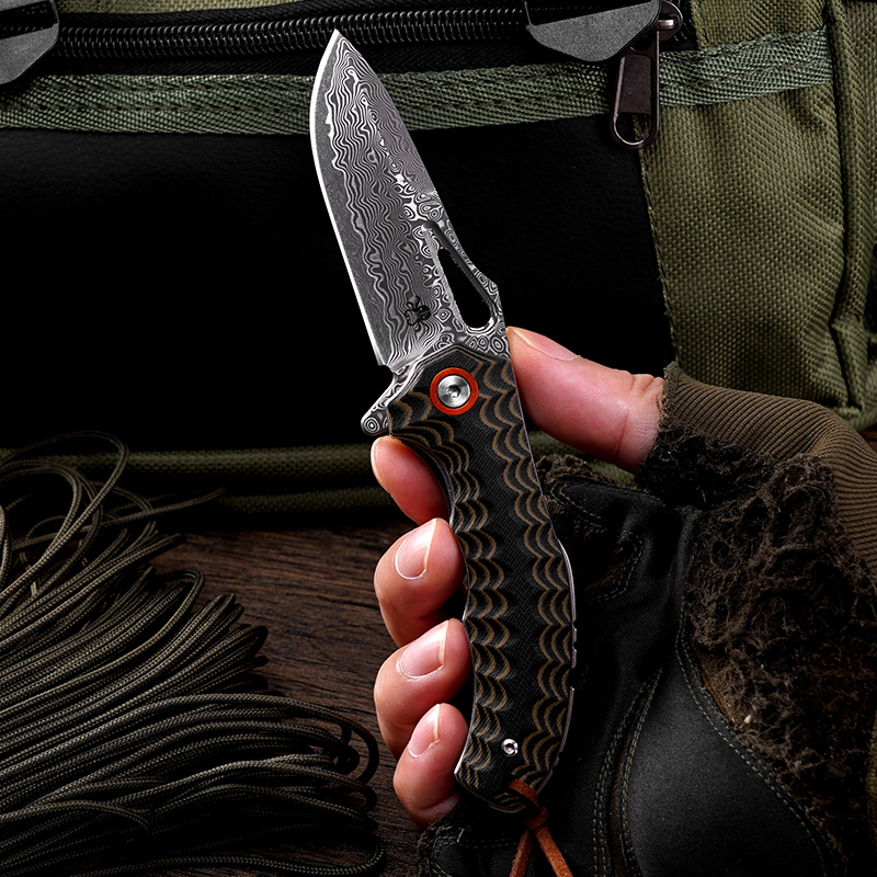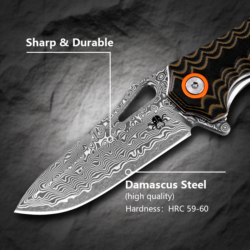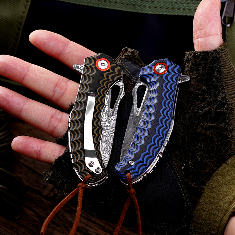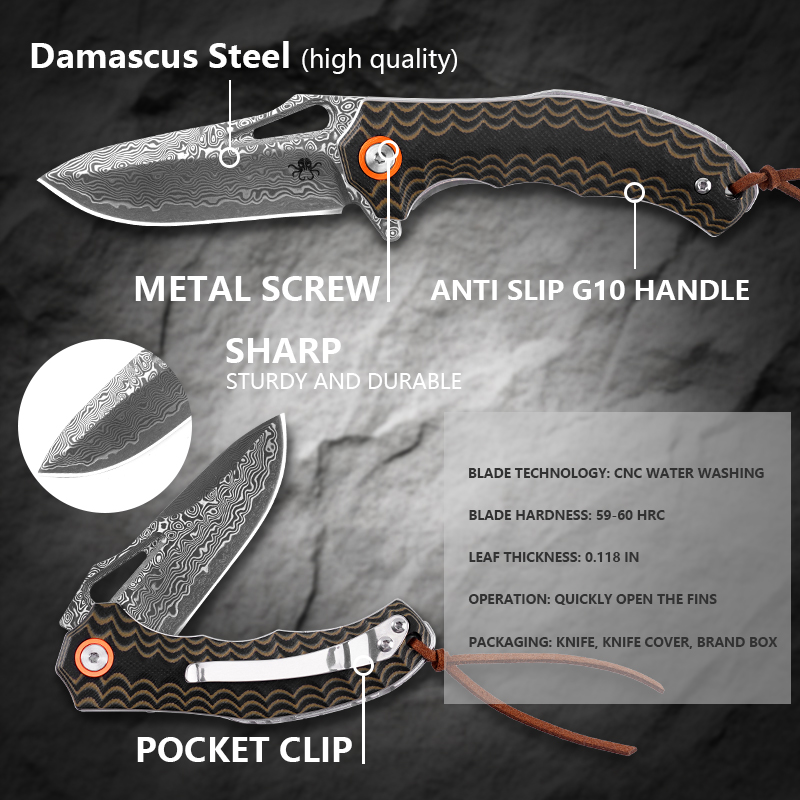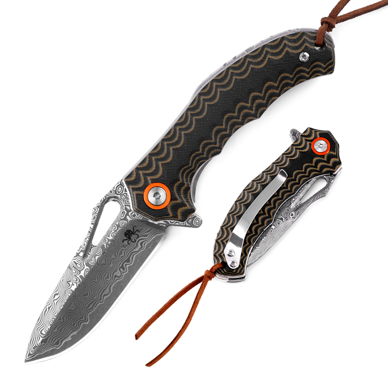 KLAKEN J345-Tideborn New Damascus Steel Blade With G10 Handle Folding Pocket EDC