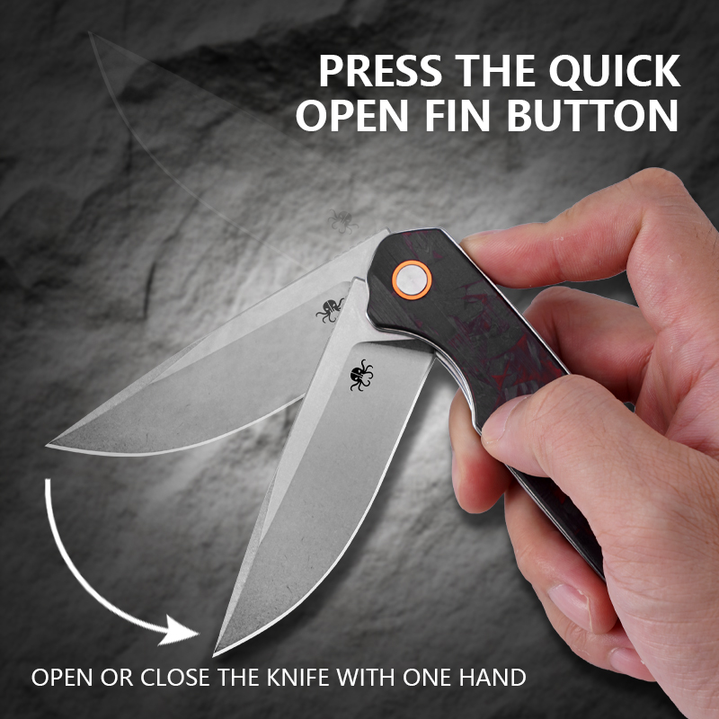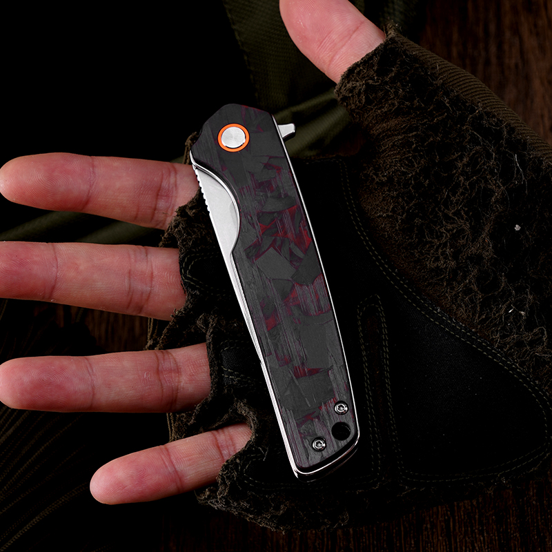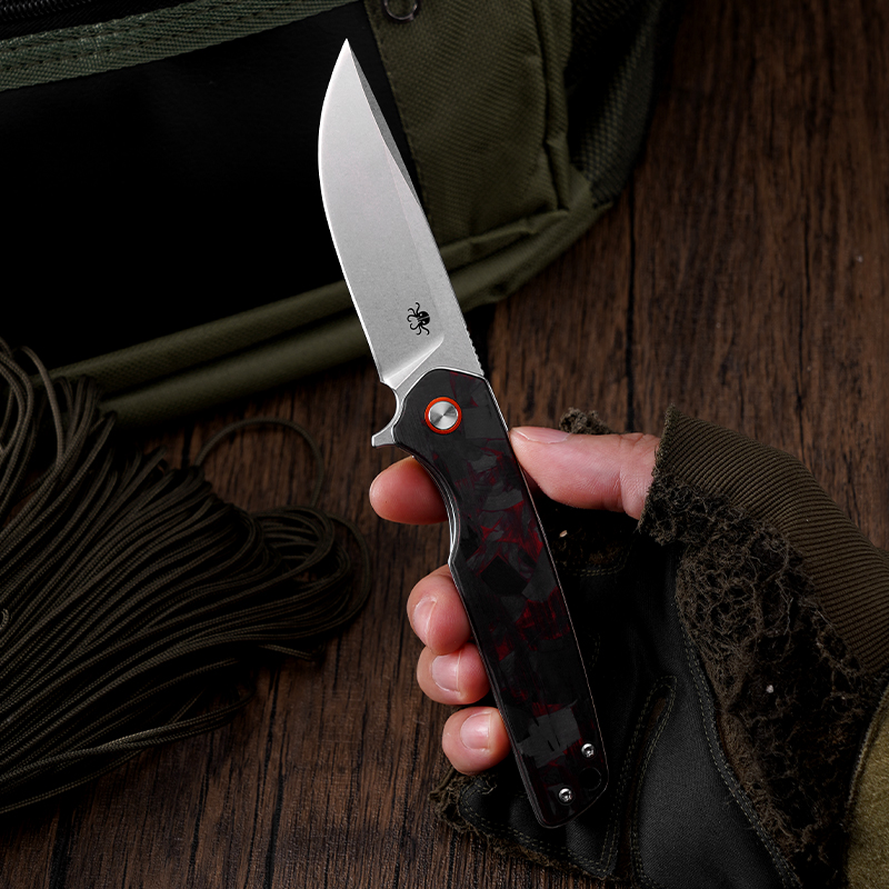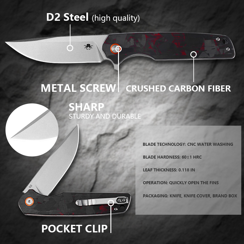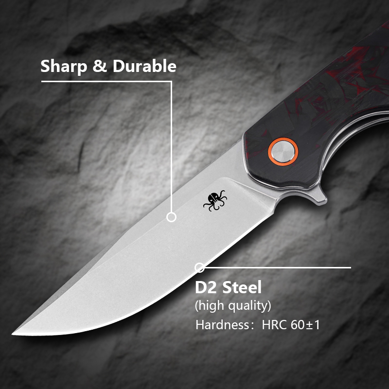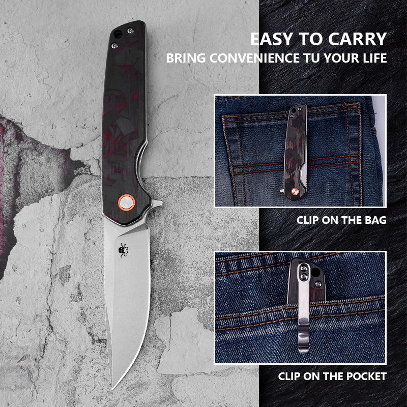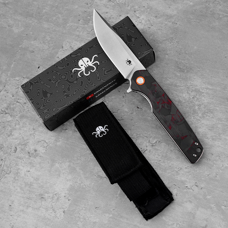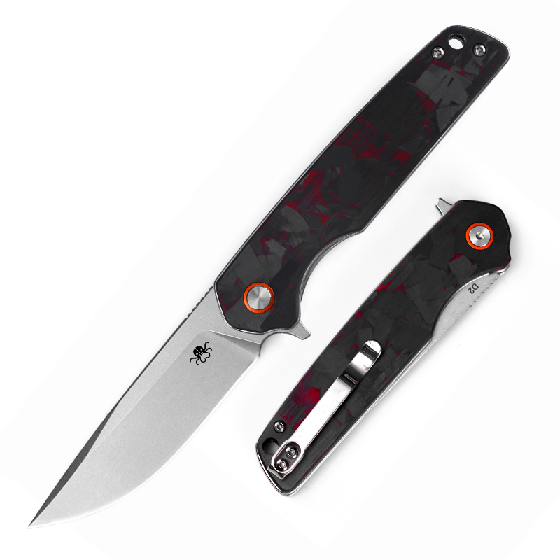 KLAKEN J354-WARPATH, D2 Stonewashed Blade With Red Carbon + G10 Handle EDC Pocke