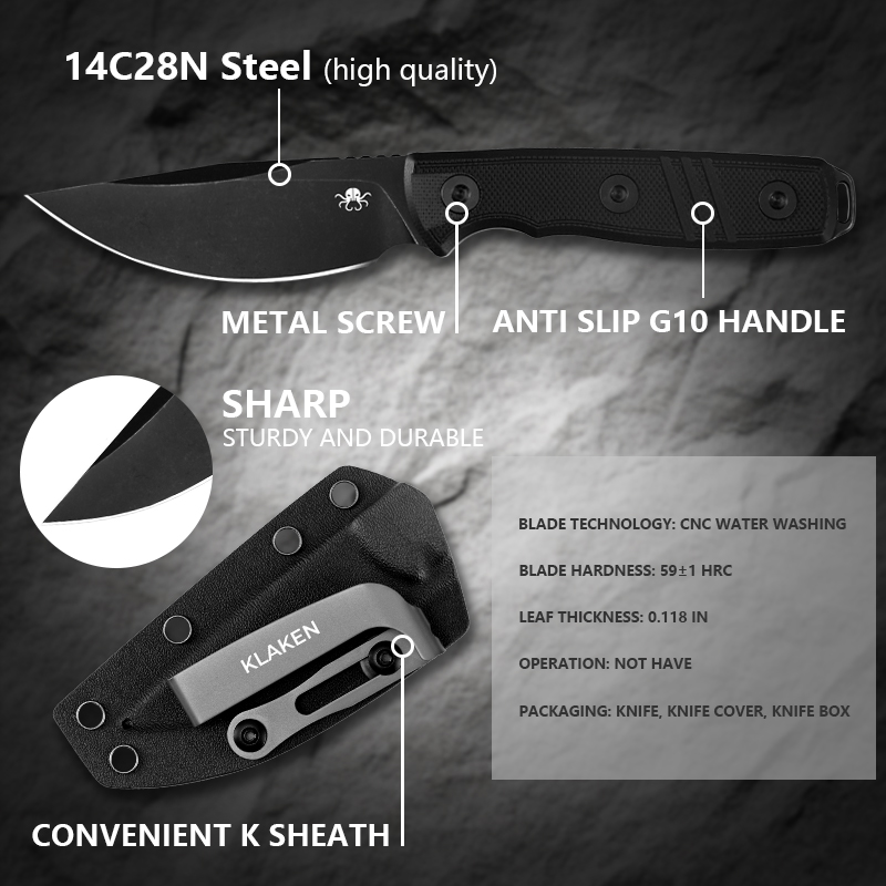 Be the first to review “KLAKEN Z069 Apex, 14C28N Blade With G10 Handle EDC Outdoors Fixed Blade Knife” Cancel reply